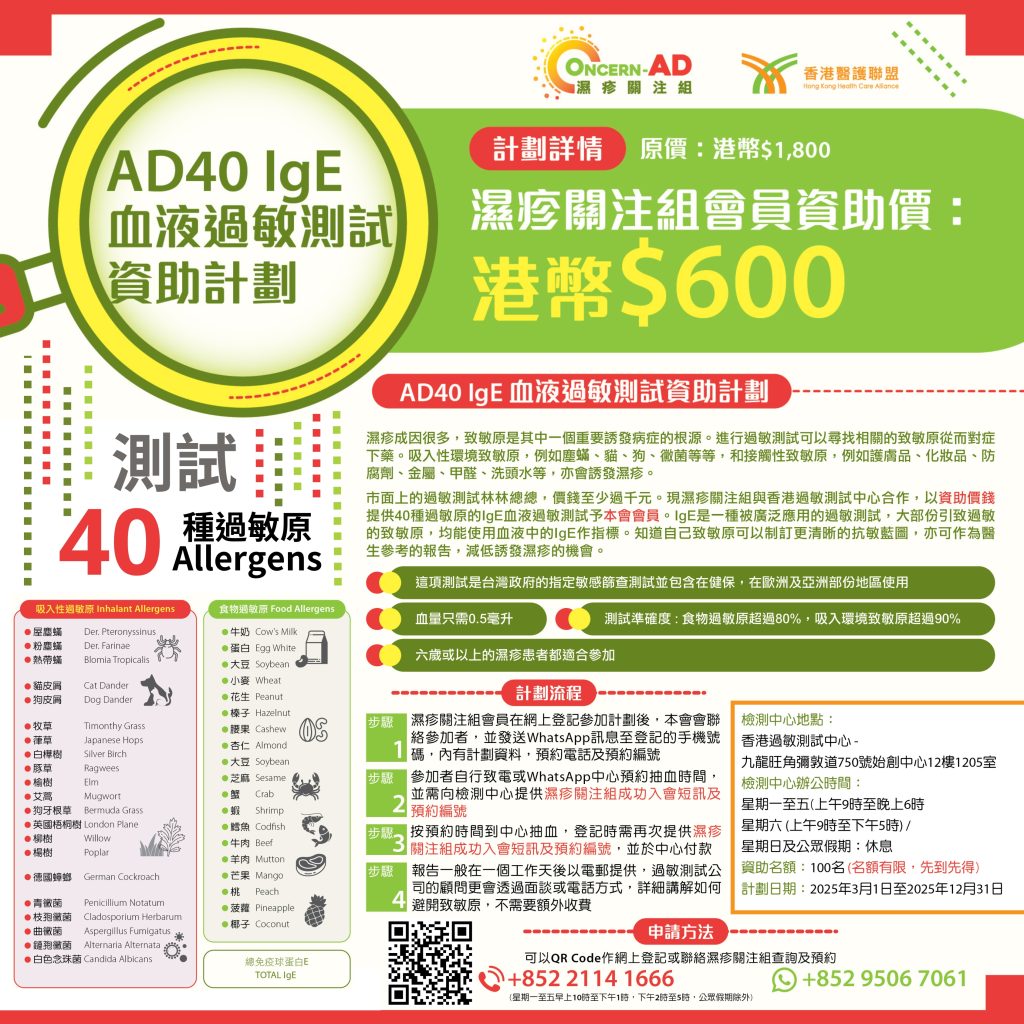 濕疹關注組及香港醫護聯盟主辦:AD40 lgE 血液過敏測試資助計劃🩸